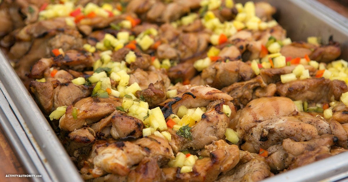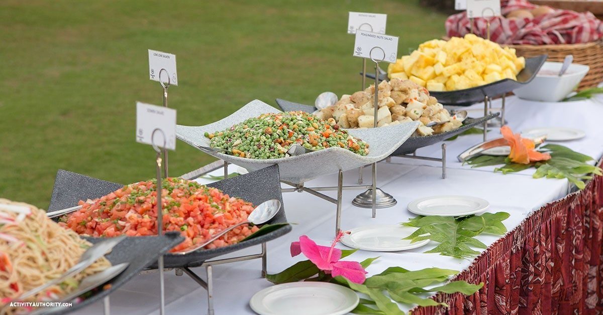Experience an authentic Hawaiian Imu ceremony, and enjoy a huge variety of menu items, including Maui Gold Pineapple Salad, Asian Style Somen Salad, Upcountry Mixed Green Salad, Slow Roasted Kalua Pork, Island Style Pulehu Chicken, Grilled Pacific Catch with Ginger-Lemongrass Butter Sauce, Lomi Lomi Salmon, Poi, Hawaiian Style Fried Rice, Molokai Sweet Potatoes and more, followed by an assortment of delectable desserts such as a Guava Chiffon Cake, Mango Bread Pudding and Traditional Haupia. The food at this Maui luau is absolutely delicious!