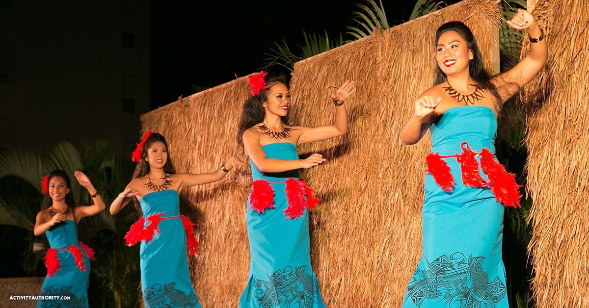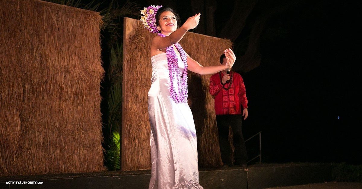The luau entertainment consists of a Pareo Fashion Show, Hawaiian arts and crafts, and a colorful presentation of songs and dances through the South Pacific, including Polynesians from Hawaii, Rarotonga, New Zealand, festival dances of Tahiti, warrior dances of Fiji and fire knife dancing of Samoa, all set to the pulsating sounds and drum beats from world-renowned Polynesian entertainment producer, Tihati Productions.