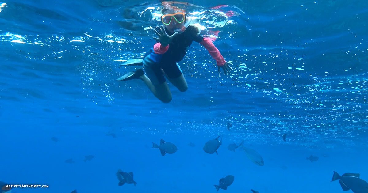 We had to check in early in the morning. Like really early. Once we got the safety briefing, we walked down to the beach and walked onto the boat from the water. King of a fun and unique way to enter a boat. The crew provided all necessary gear including masks, fins and snorkels, and then we set off. As soon as we left shore, a school of dolphins appeared out of nowhere, jumping around our boat! We continued along to Molokini Crater where we spotted hundreds of colorful fish swimming through coral reefs. It was great because we arrived well before any other snorkel boats. I’m not a morning person, so I may try your later trip next time.