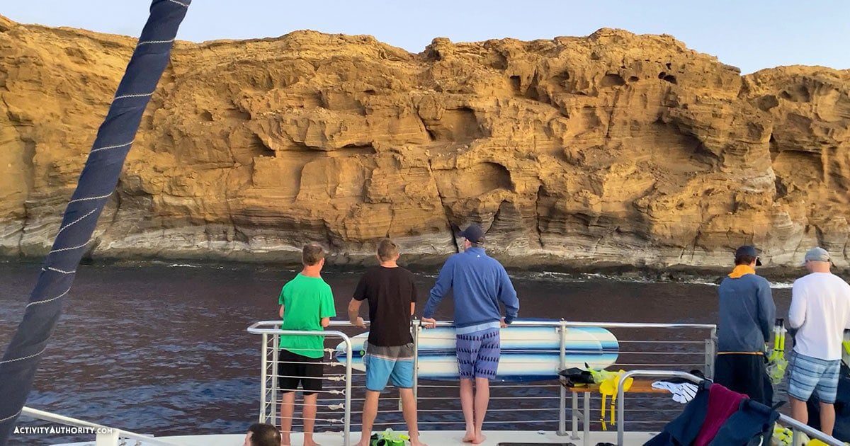 If you need gear, reef-safe sunblock, or even a refresher on how to snorkel, this is a great Molokini tour for you. The crew is constantly coming around with food, too: freshly baked cinnamon rolls, greek yogurt parfait with granola and Kula strawberries, fresh fruit, frittatas, ham and cheese sliders, fresh coffee, teas, and hot chocolate. Once you’ve finished snorkeling, grab a bloody or mimosa.