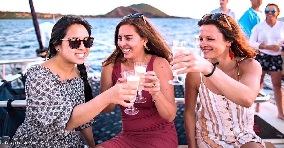 Toast to the evening’s festivities with a glass of Lokelani Sparkling Rosé, and enjoy the ultra-luxurious catamaran, friendly service, and convenient check-in with your toes in the sand. Shuttle service from popular Wailea Resorts is offered at a minimal fee when enquired about ahead of time, and infants under 2 years of age are free. Whether you’re celebrating a night out with a loved one, a family-fun day, or an exciting excursion with friends, you’re sure to fall in love with this ultra-memorable Maui ocean activity.
