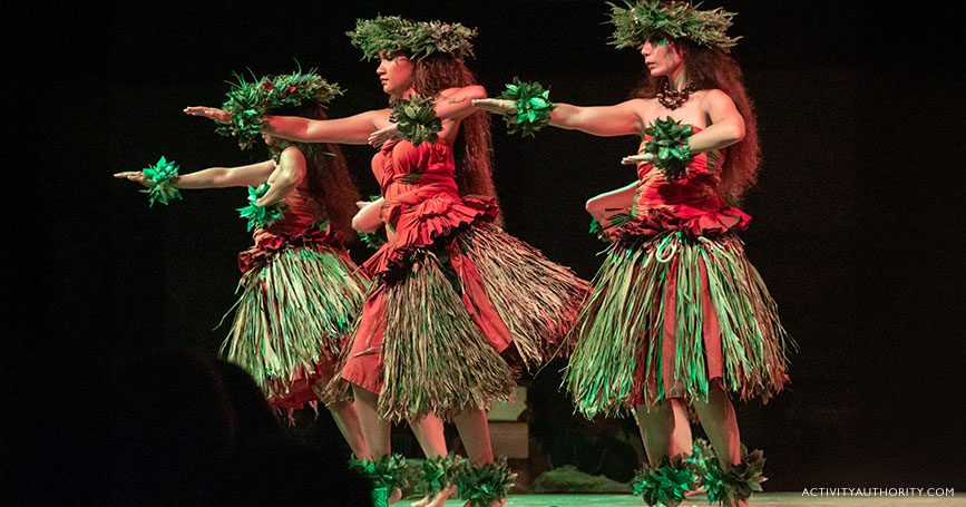 Indulge in Hawaii’s favorite fare at Luau Kalamaku’s lavish buffet. The feast commences with an authentic ʻimu ceremony, where the kalua pig is unearthed from the underground oven. Now, it’s time to eat! Help yourself to heaping plates of traditional Hawaiian eats like poi, kalua pork, and fish. Some of Hawaii’s adopted favorites, including teriyaki chicken, vegetable chow mein, and potato macaroni salad, are also offered. Are you gluten-free? Vegan? Or simply have picky eaters in tow? The extensive menu satisfies all tummies and taste buds.