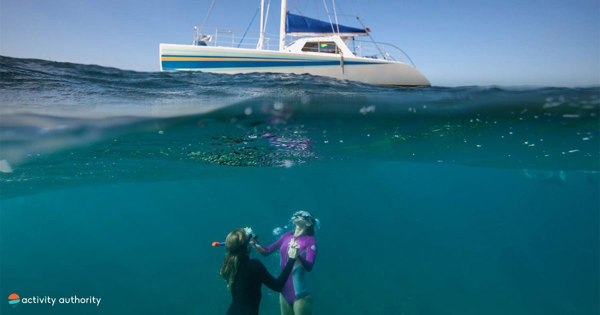 A full day on the water requires some fuel. Breakfast includes a healthy spread of scrambled eggs with veggies, assorted fruit, and pastries. Juice, coffee, and tea are also on offer to help get you through the early morning start. Lunch is a complete deli-style buffet, served up alongside pasta salad and veggie platters with hummus and spinach dip. Beverages are also available. Alcoholic beverages are available for purchase after snorkeling.