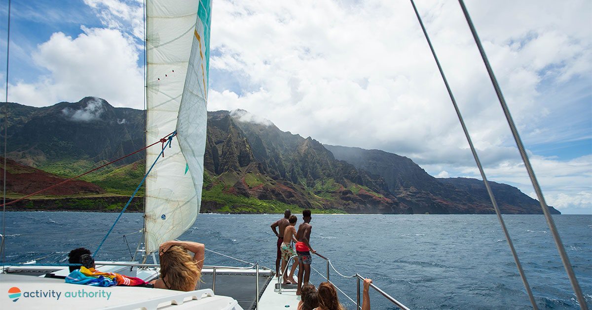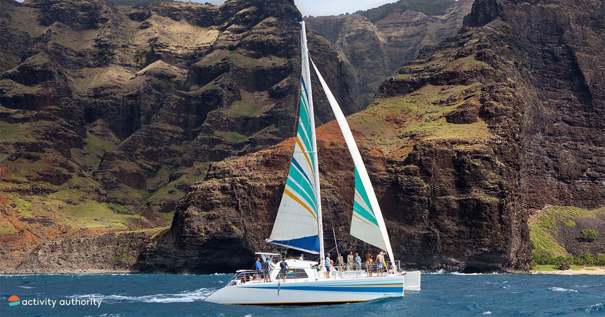 | Tour Details: | A 5-hour tour aboard a 50' catamaran, Leila, offering views of the Napali Coast, marine life, and seasonal whale sightings (Dec-Apr). Snorkeling gear and instruction are provided. |