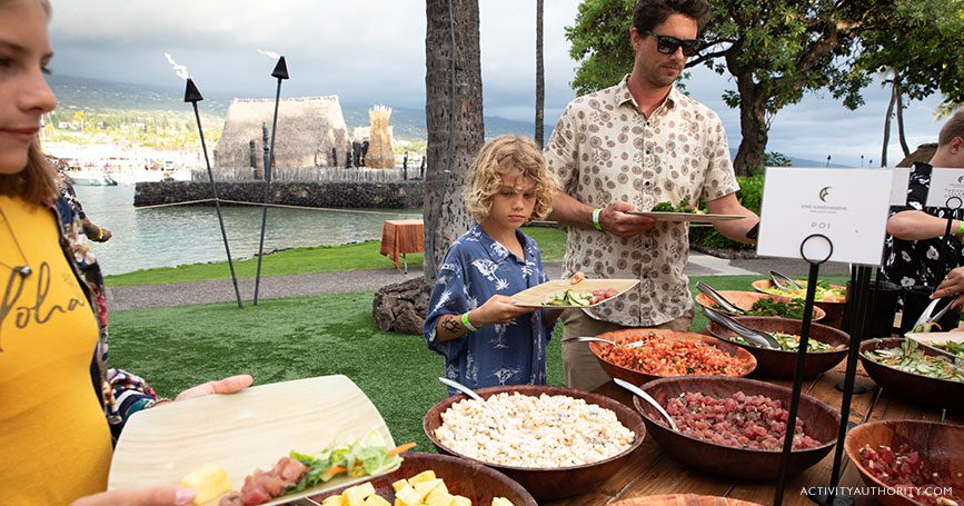 | Check-In and Parking: | Check-in is at the Aloali'i Cultural Resource Center in the lobby of the resort and typically begins around 5:15pm. Self-parking is available for $5 after validation. |