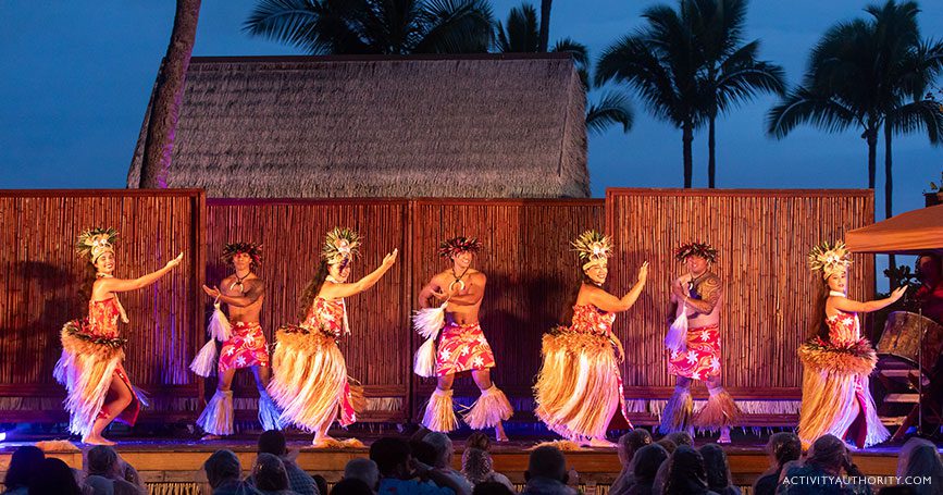 Located on the waterfront of the Courtyard King Kamehameha’s Kona Beach Hotel, this luau is held adjacent to one of Hawaii’s most historic sites- Ahuʻena Heiau, the estate of Kamehameha the Great. As you arrive, you will have an opportunity to meet the performers, learn about hula, and even get a temporary Hawaiian tattoo. Watch as the royal court arrives by outrigger canoe and witness the unveiling of the roasted pig from the imu (underground oven). Enjoy a stunning Polynesian show, live music, a Hawaiian-style buffet dinner, and an open bar. This event runs Tuesday, Thursday, and Sunday evenings with occasional days added during busy times.