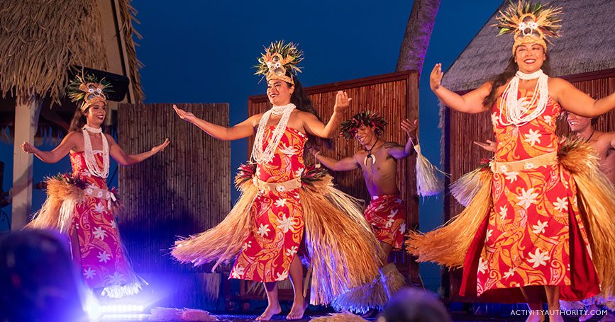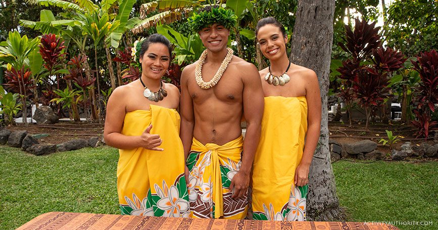 Enjoy a warm welcome and an array of activities upon arrival at our favorite Big Island Luau, such as meeting the performers and learning hula. After getting settled, witness the imu ceremony, where the roasted pig is uncovered from the underground stone oven. Shortly after, watch as the royal court arrives by outrigger canoe. Dinner is complemented by live music, followed by an outstanding Polynesian show.